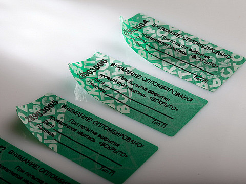 Контрольные пломбы-наклейки — это одноразовые самоклеящиеся этикетки с уникальным номером, которые применяются для опломбирования различных поверхностей (пластиковых, металлических, деревянных, картонных, прочее) и наклеиваются на места, требующие защиты от несанкционированного доступа. Оснащены защитным термослоем, за счет которого при попытке удаления на стикерах проявляется сообщение «OPEN VOID» или «OPEN». Поскольку повторное наклеивание не приводит к исчезновению надписи, выявить попытку вскрытия становится очень просто.