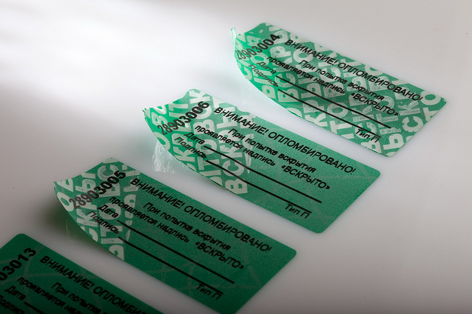 Контрольные пломбы-наклейки — это одноразовые самоклеящиеся этикетки с уникальным номером, которые применяются для опломбирования различных поверхностей (пластиковых, металлических, деревянных, картонных, прочее) и наклеиваются на места, требующие защиты от несанкционированного доступа. Оснащены защитным термослоем, за счет которого при попытке удаления на стикерах проявляется сообщение «OPEN VOID» или «OPEN». Поскольку повторное наклеивание не приводит к исчезновению надписи, выявить попытку вскрытия становится очень просто.